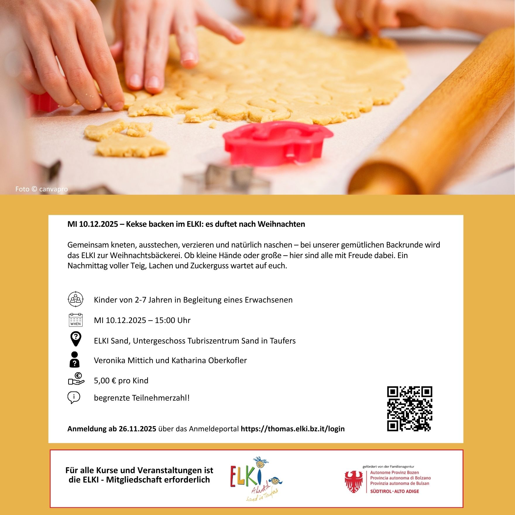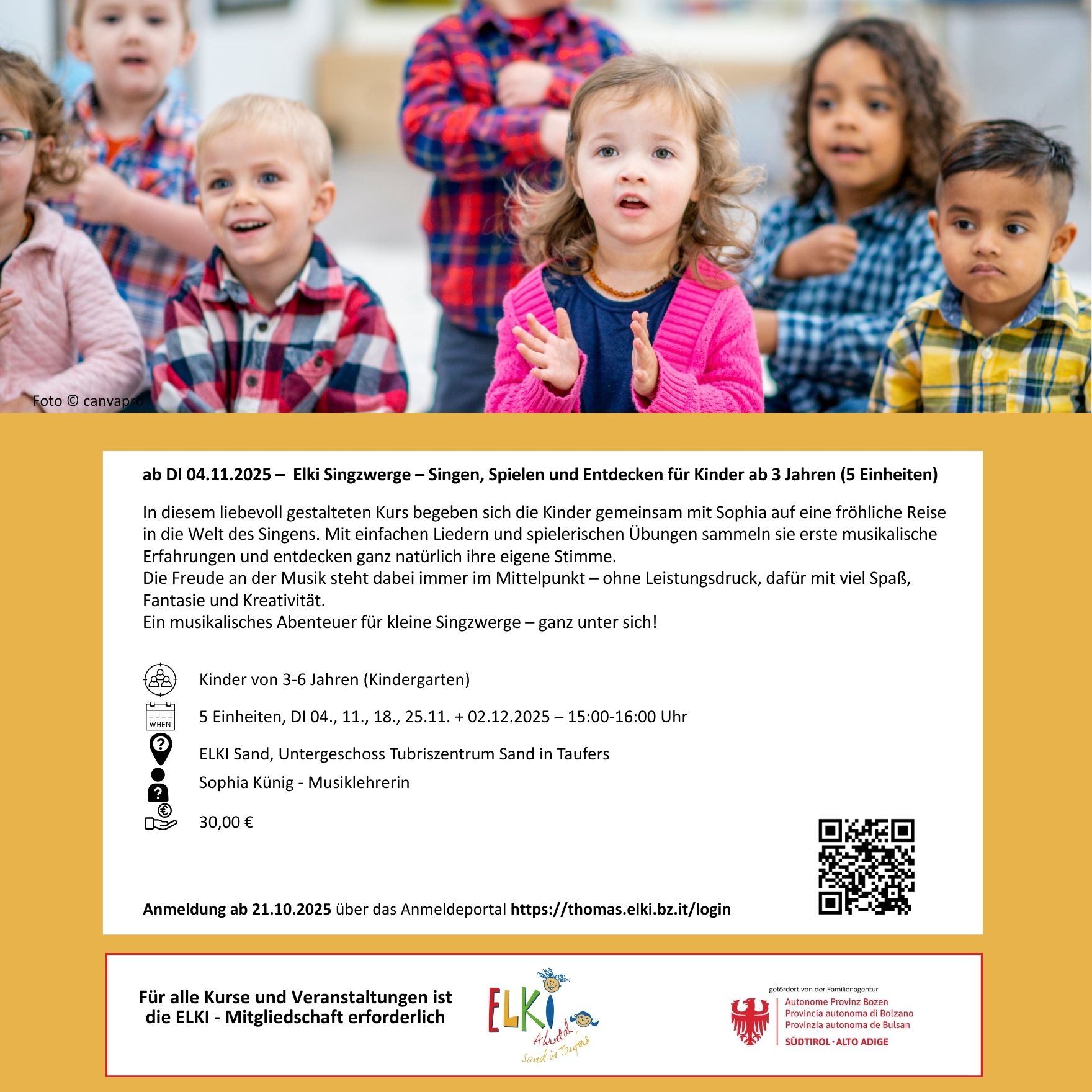Für die Teilnahme an allen Kursen und Veranstaltungen ist eine ELKI-Mitgliedschaft erforderlich.