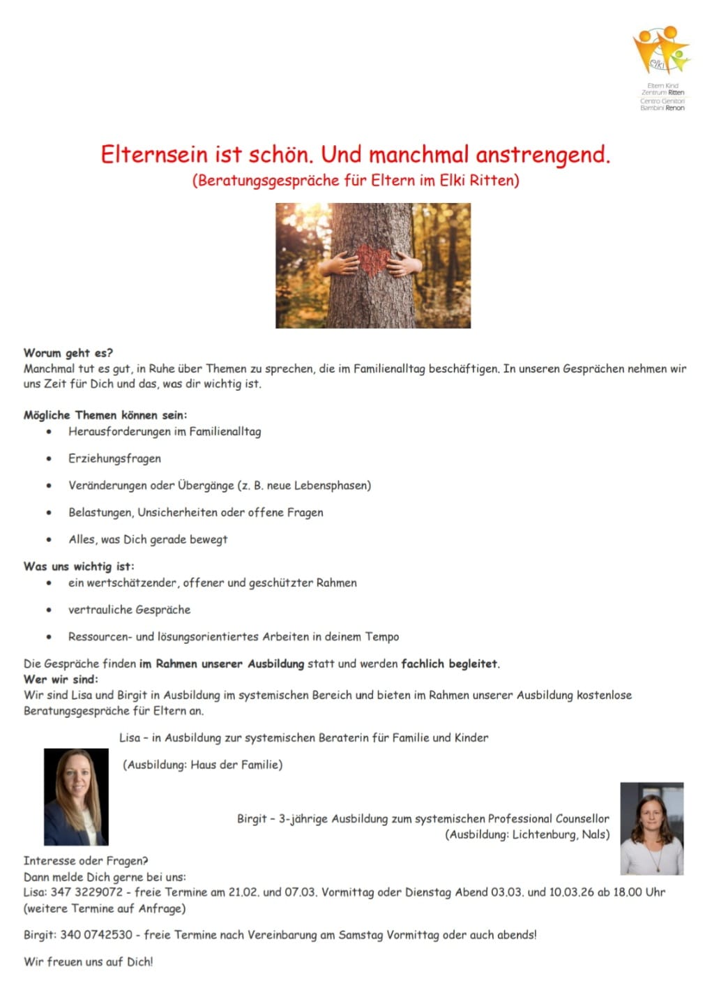 Bei zu geringer Teilnehmerzahl behält sich das Elki vor, den Kurs abzusagen. In diesem Fall werden die bereits eingezahlten Gebühren zur Gänze zurückerstattet.