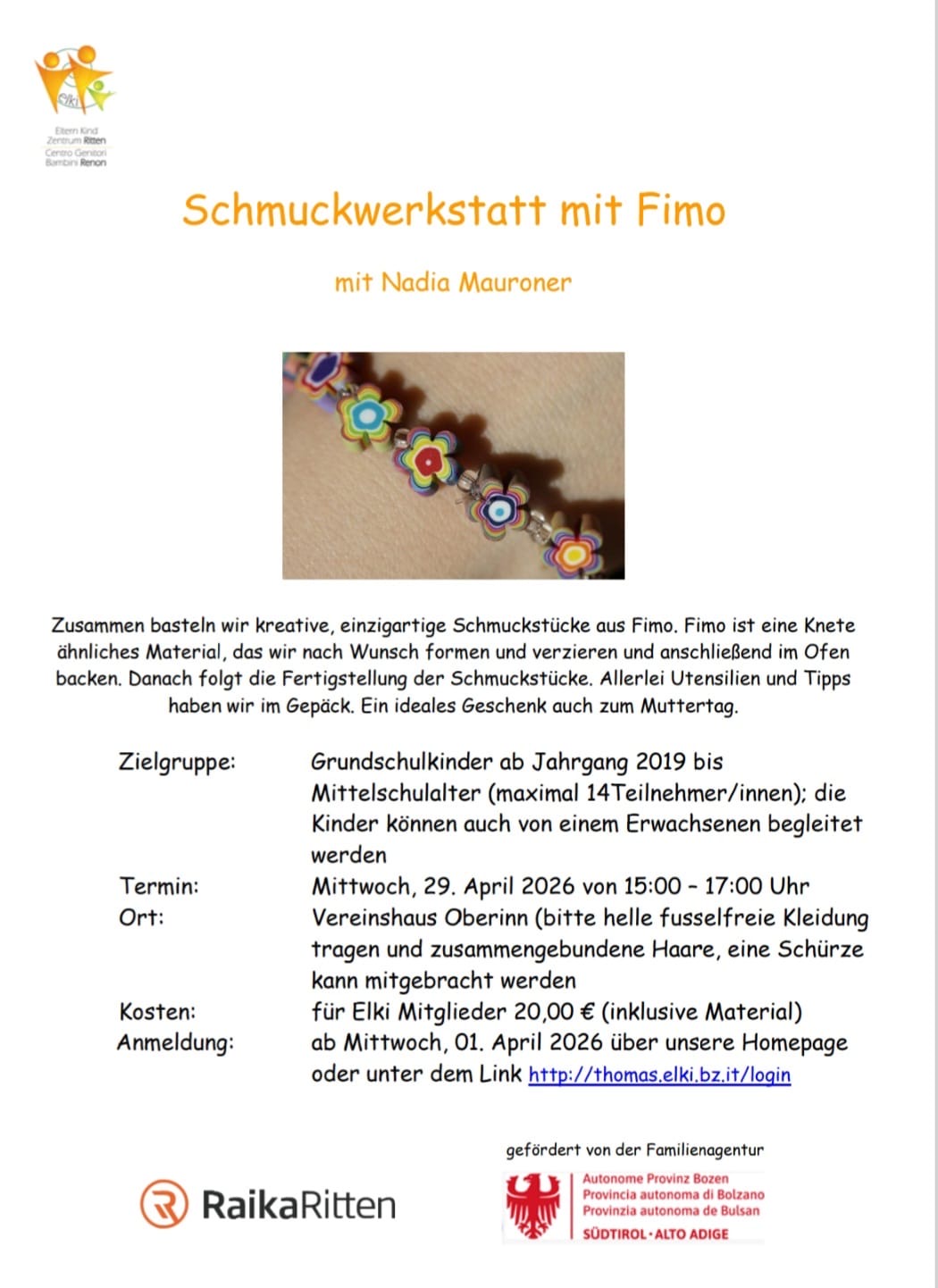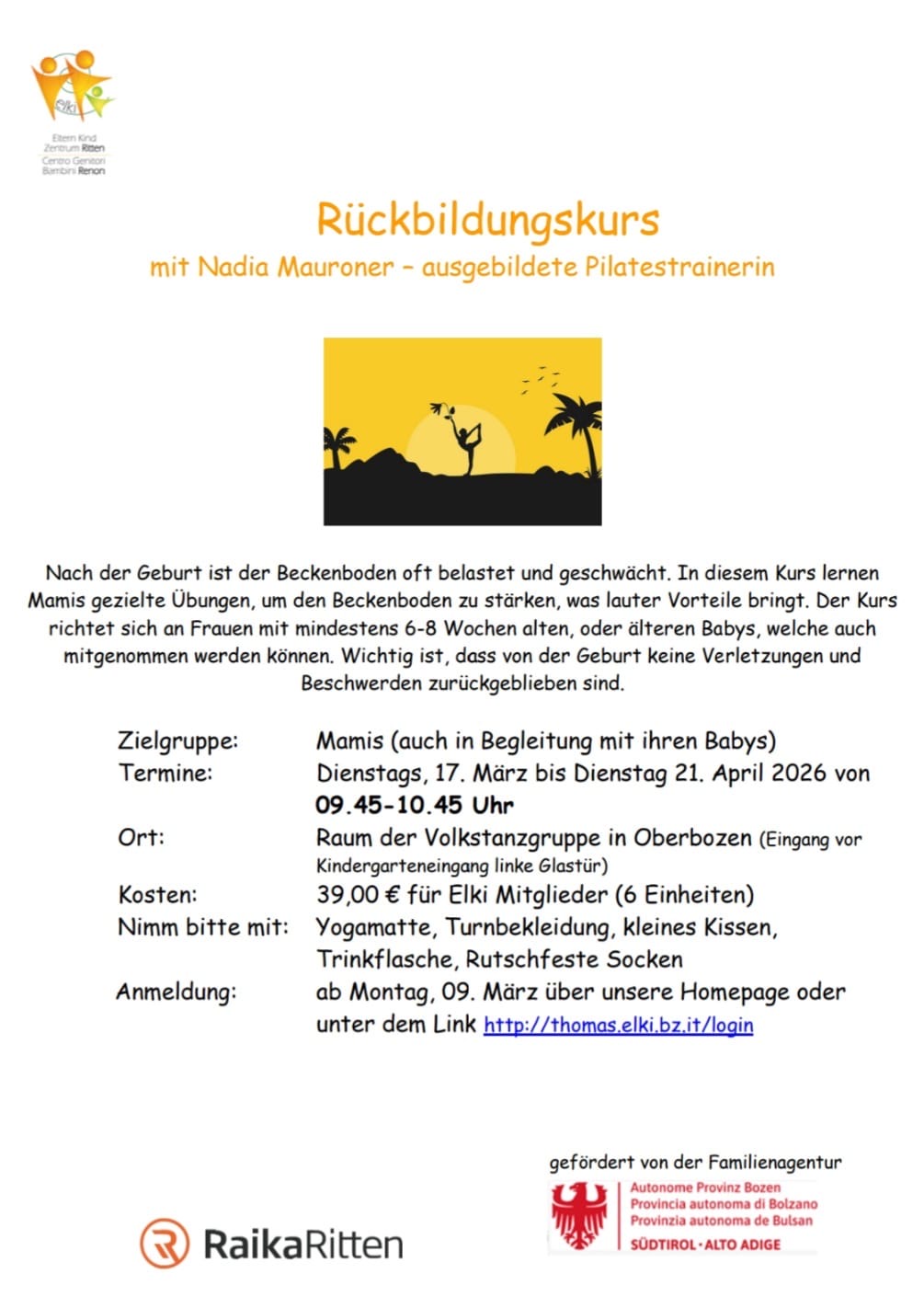 Die Anmeldung zu den verschiedenen Kursen und Angeboten ist immer erforderlich. Die Kursbeiträge können im Elki bezahlt oder auf das Konto überwiesen werden.