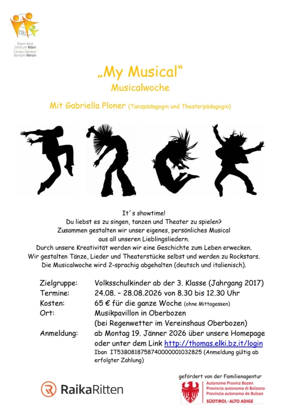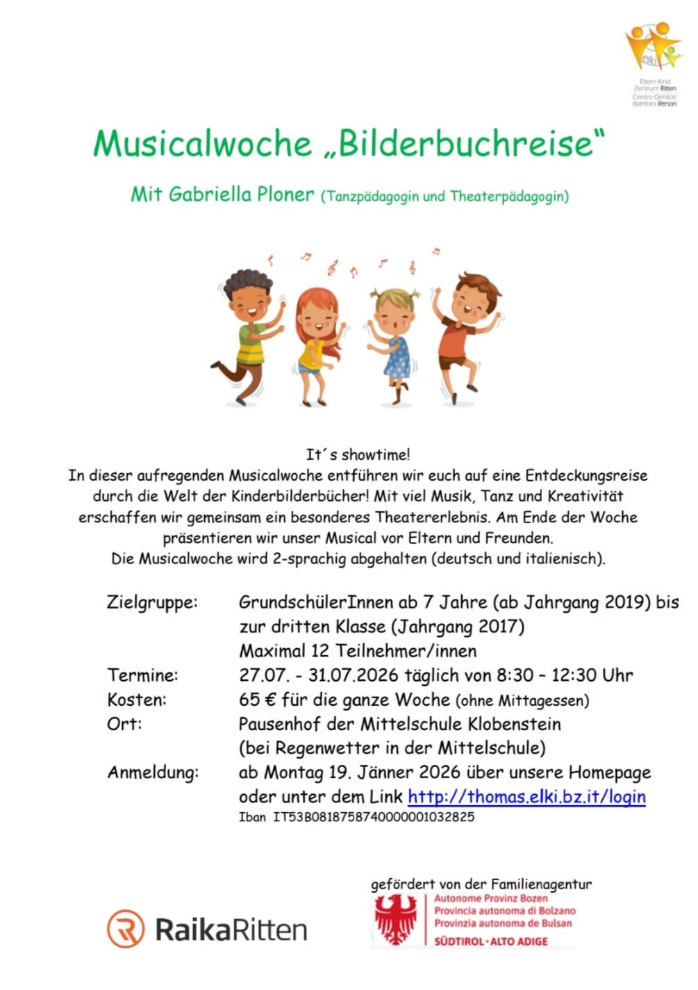 Bei zu geringer Teilnehmerzahl behält sich das Elki vor, den Kurs abzusagen. In diesem Fall werden die bereits eingezahlten Gebühren zur Gänze zurückerstattet.